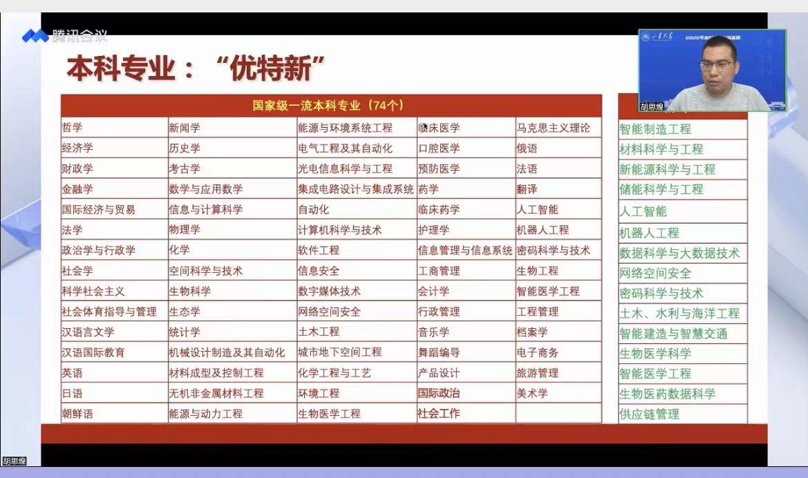 此外,yl23455永利官网(湖南省)招生线上咨询工作也于24日开启,当日下午,山东大学2022年政策解读网络咨询会-湖南场举行,yl23455永利官网党委副书记顾乃静为湖南考生线上解读了招生政策、在线答疑互动。26日上午,山东大学2022年第五届高招咨询会-湖南场举办,胡思煌线上宣讲并为湖南考生答疑;同时,雅礼中学线上咨询专场在腾讯会议开展,王宪华在线为考生答疑。报考期间,考生除了通过电话、咨询群等方式咨询外,还可通过腾讯会议线上咨询。