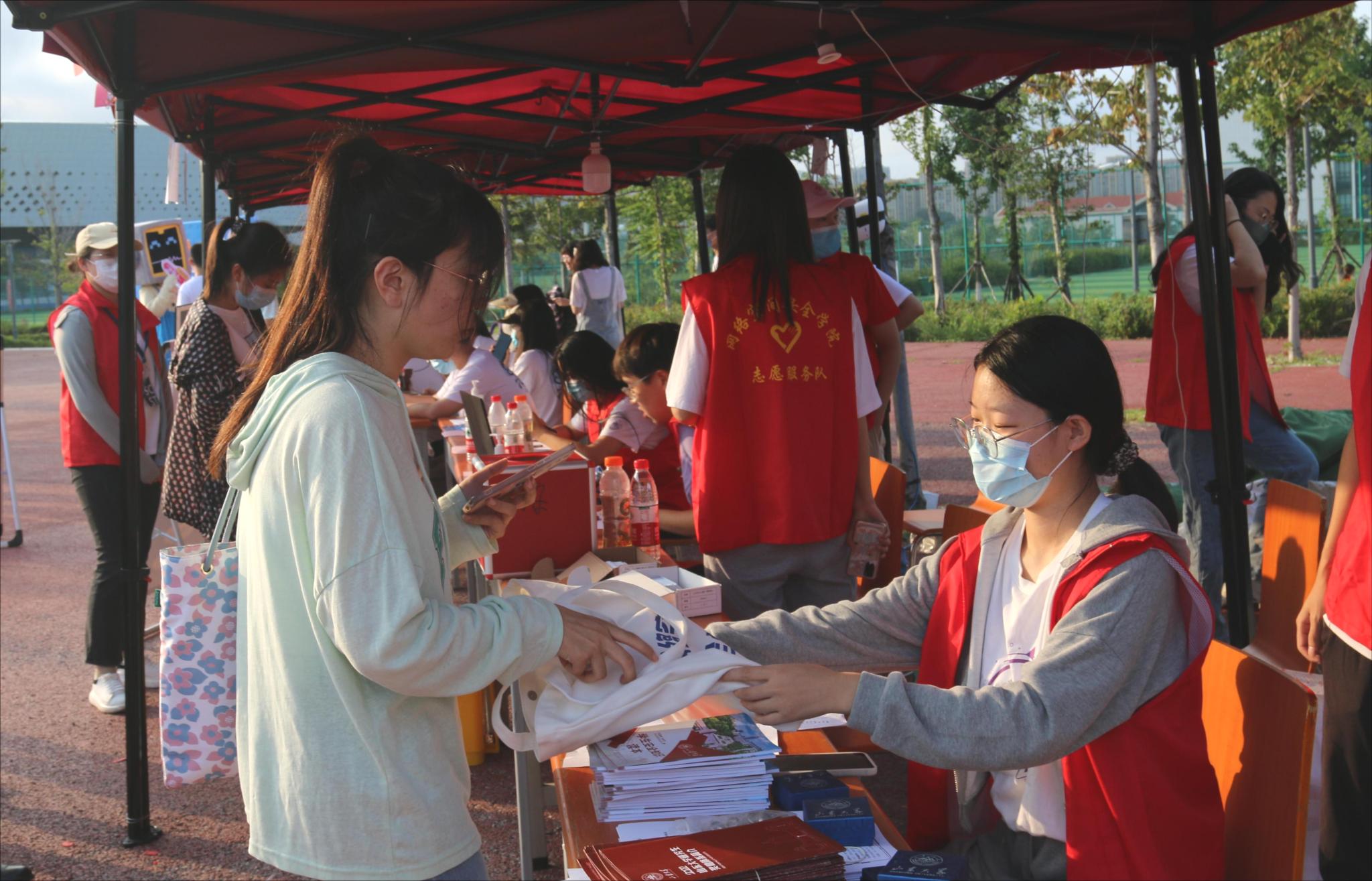 报到当日,校区领导、职能部门负责人及学院班子成员到现场指导学生迎新工作。线下志愿者引导新生入校、报到登记、发放校园卡及新生大礼包,并协助运送行李,引导新生进入宿舍,迎新工作有条不紊。在疫情防控方面,迎新工作期间相关工作人员和新生统一佩戴口罩,新生进行统一核酸检测,相关设备均用消毒液消毒,确保新生安全入校。