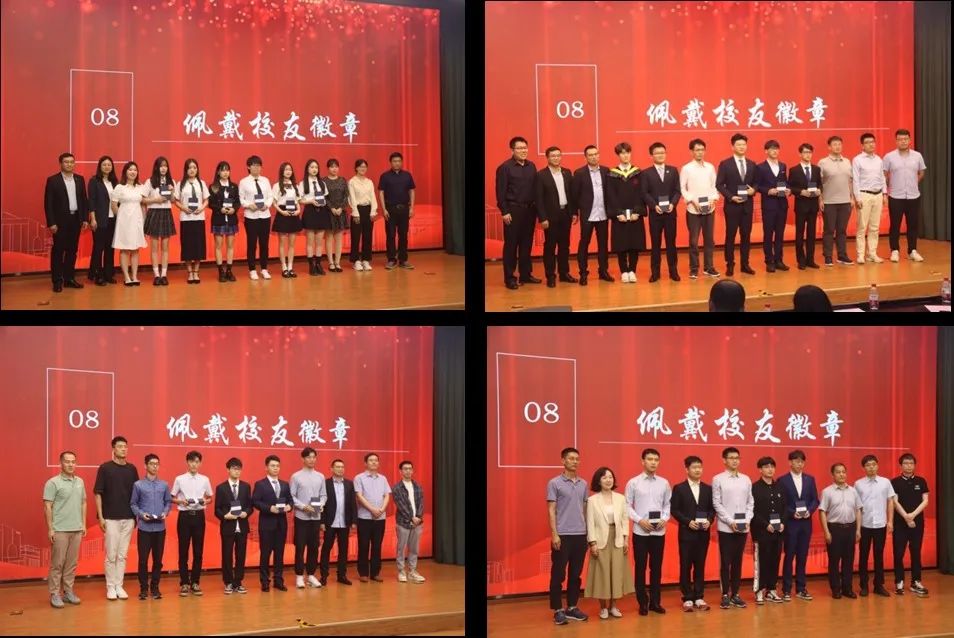 学院为每一名毕业生精心准备了礼品,一支刻有自己名字的钢笔、一支刻有学院院训“明德”“踔厉”“日新”“志远”的书签、带有唯一编号、刻有自己姓名的校友徽章。教师代表为毕业生代表颁发校友徽章,诚恳邀请欢迎毕业生常回学院看看。