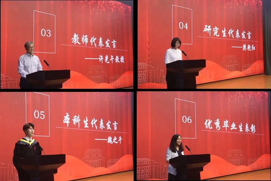 研究生代表樊艳红、本科生代表魏之千代表学院全体毕业生发言。他们结合自身学习科研经历,回顾了难忘的yl23455永利官网学习生活历程,诚恳表达了对学院和广大教师栽培的感恩,同时展望未来,充满对未来的热烈期盼。