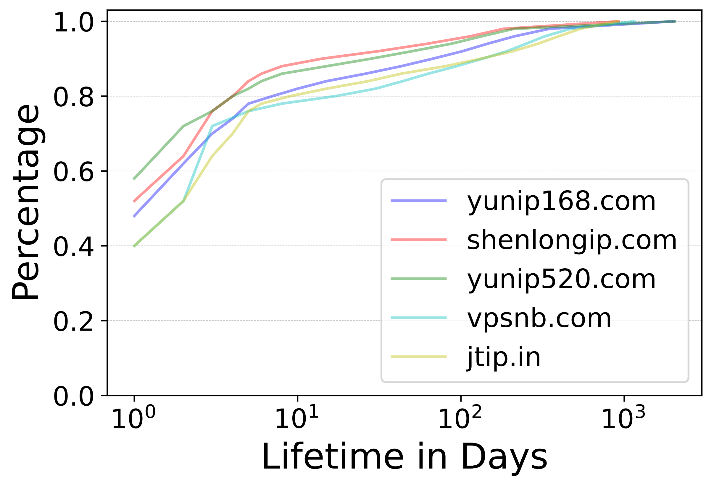 另一篇论文是《An Extensive Study of Residential Proxies in China》,由郭山清教授团队与中科大糜相行教授团队、纽约州立大学布法罗分校、奇安信技术研究院、清华大学等地的国内外知名学者合作完成,这是首次针对中国境内住宅网络代理进行安全研究的学术论文。共同第一作者是2021级硕士研究生杨明烁。住宅网络代理(RESIP)在近些年兴起并得到广泛使用,其相比传统网络代理,具有规模大、分布广、高匿名性等特点。为了防范和化解住宅网络代理带来的重大安全风险,研究人员创新性地设计了基于自然语言处理的机器学习分类器,以自动化地捕获住宅网络代理服务商,并成功识别了399个RESIP服务商。此外通过基于流量标记的代理节点抓取机制等方法,研究人员抓取到了900多万个RESIP IPs(51.36%位于中国)。在对RESIP及其服务的广泛测量中,研究人员发现了一些潜在的安全隐患。特别的,位于中国的80.05% RESIP IPs在2021年至少产生了一条恶意网络流量,总计5200万条,非法挖矿行为在访问的流量中占比最高。此外,91%的RESIP IPs的使用寿命不到10天,而大多数RESIP服务在生命周期内的日活RESIP IPs呈现出波峰波谷的模式,这种快速变化与迁移的特征,会给传统的安全防护机制带来新的挑战。